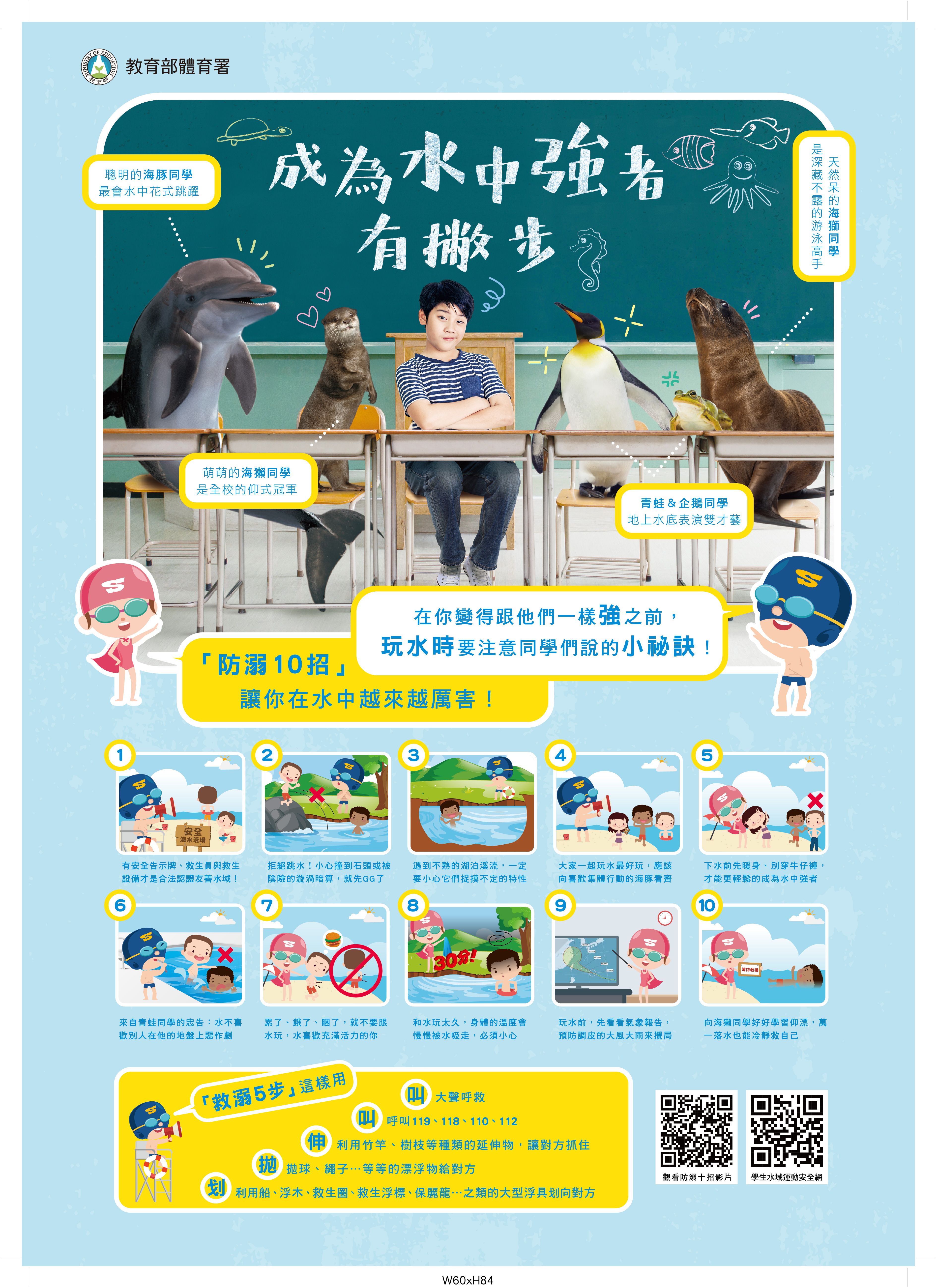 因應端午連假將至及因COVID-19疫情嚴峻學校停課中,防疫併同防溺,為強化學生水域安全知能,提醒學生務必注意水域安全與家長務必留意子女行蹤。以下防溺影片及海報(如下附件檔)供參閱。